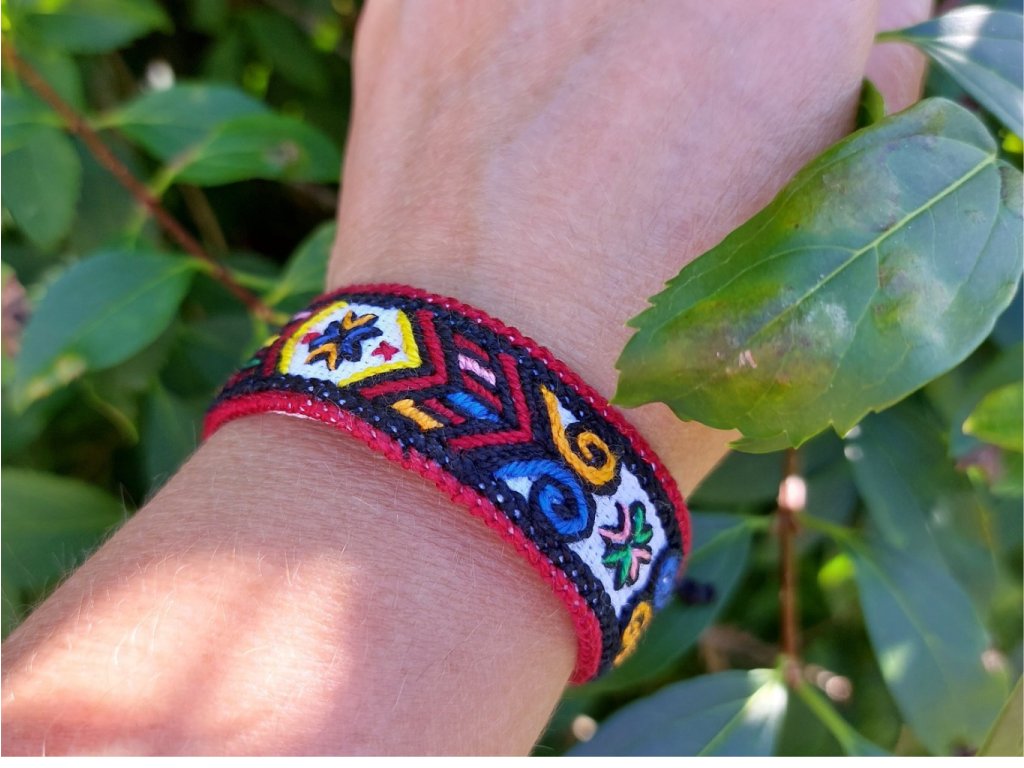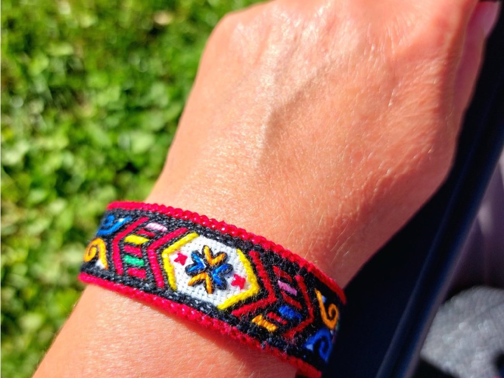 Délka náramku - obvod zápěstí - je 17 cm, šířka náramku je 2 cm.