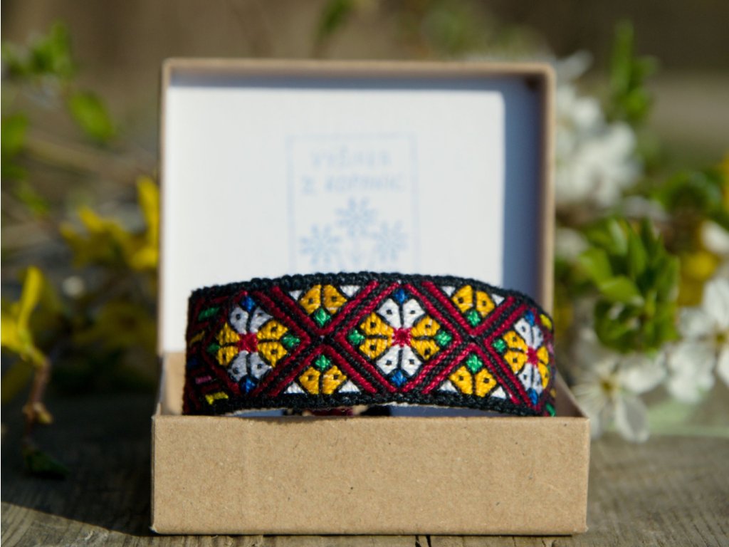 Délka náramku - obvod zápěstí - je 16 cm, šířka náramku je 2,5 cm.