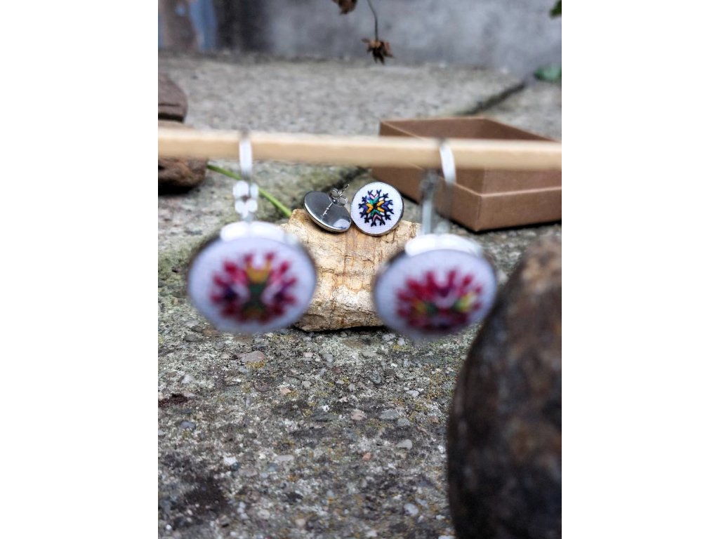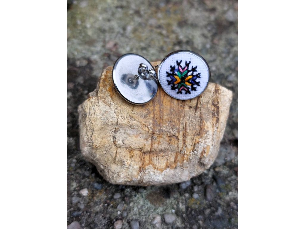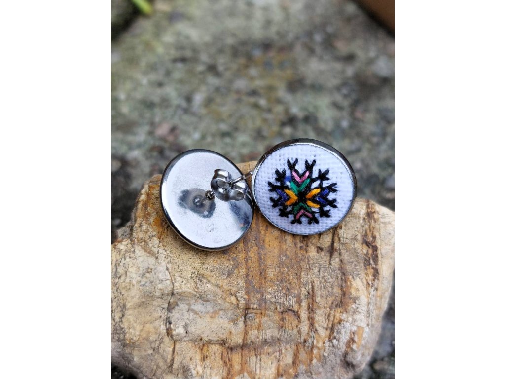 Jemné, ručně vyšívané náušnice s tradičním motivem makovičky, který v sobě nese poselství hojnosti a klidu.